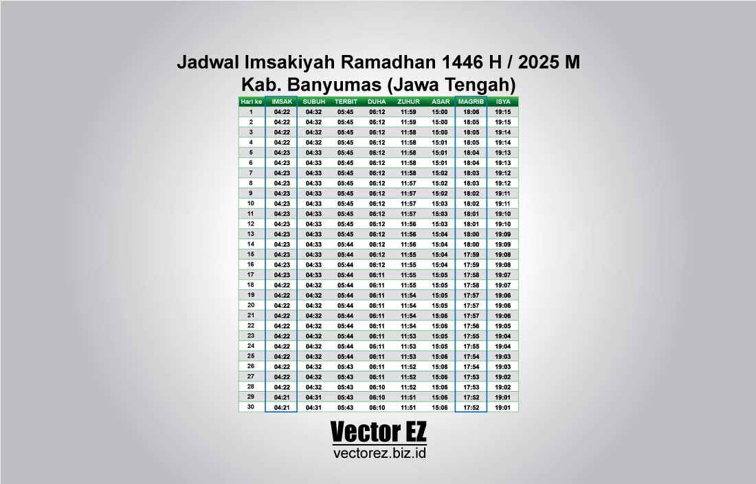 Jadwal Imsakiyah 2025 – Kab. Banyumas (Jawa Tengah)